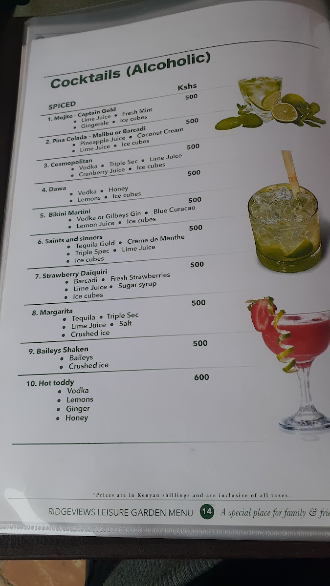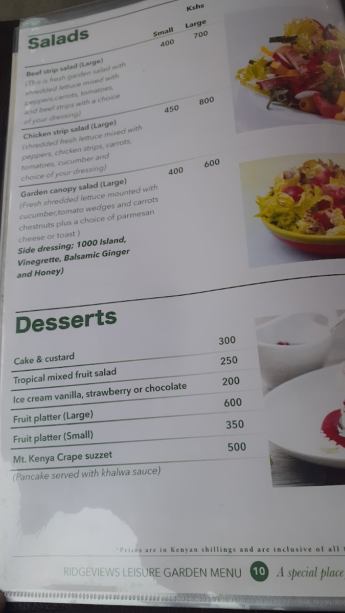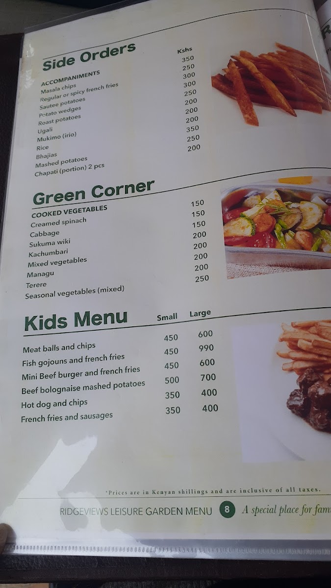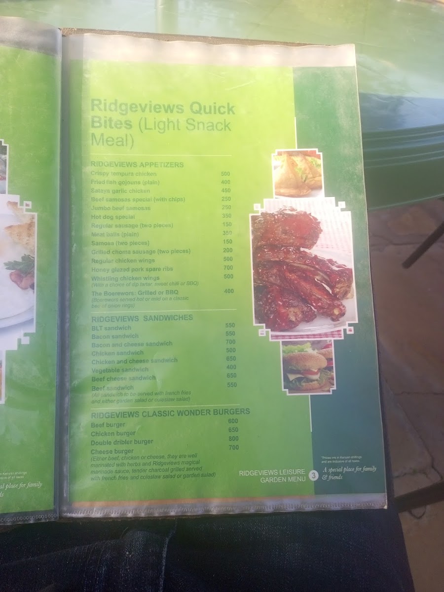 Ridgeviews Leisure Garden Kiambu RD Menu
